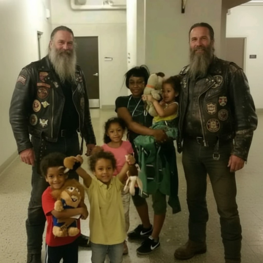 Maria looked up at us—two bearded bikers in leather—and somehow she smiled.